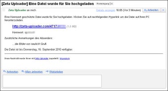 Optional packt Zeta Uploader die Datei in ein ZIP-Archiv mit Passwortschutz. Darüber hinaus bietet der Sharehoster Platz für einen persönlichen Kommentar. Die Gültigkeit des Download-Links stellt man selbst ein.